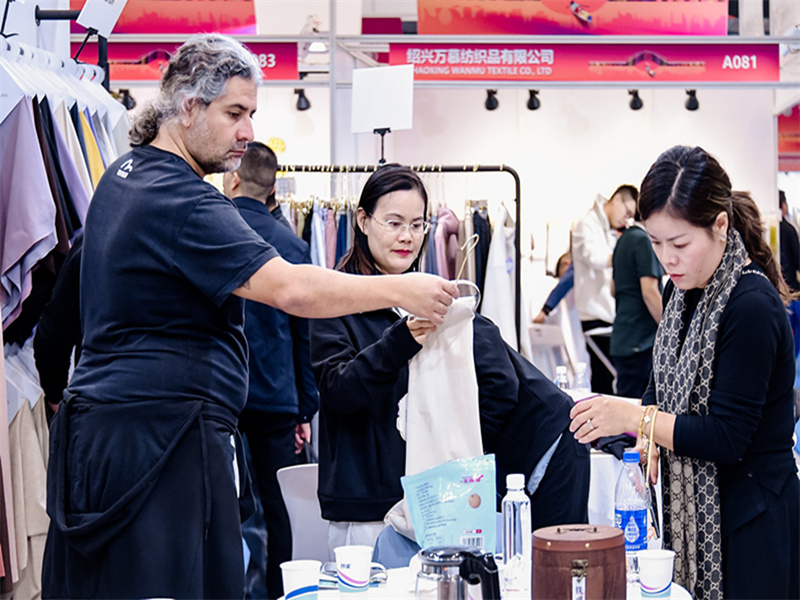 對于紹興祜恒紡織品有限公司的賈景霞經理而言,首次參展的經歷充滿了驚喜。展會首日,她的展位就迎來了絡繹不絕的客商。一位外商對產品表現出濃厚興趣,反復查看樣品、拍照記錄并仔細詢問。更讓賈景霞欣喜的是,眾多國內客商也紛紛前來咨詢,現場交流氣氛熱烈。這一幕,是柯橋紡博會作為高效商貿平臺最真實的寫照。