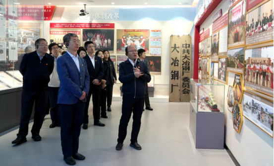 當日上午,張長義一行深入考察大冶特鋼的發展歷程與紅色底蘊。作為一家擁有112年建廠史、102年黨建史的企業,大冶特鋼不僅是全國先進基層黨組織,更始終懷揣深厚的家國情懷與文化積淀??疾焓渍緸橹行盘└惶劁擖h史館,該館以“永遠跟黨走”為核心主題,既緊扣紅色基因之“根”,全景呈現大冶特鋼作為“中國鋼鐵搖籃”的紅色革命史,以及企業在中國共產黨領導下與中國鋼鐵工業同頻成長的奮斗歷程;又彰顯高質量黨建引領企業高質量發展之“魂”,生動講述中信泰富特鋼以黨建為抓手,向建設世界一流企業堅定邁進的實踐路徑。