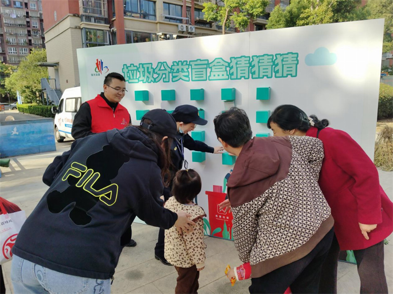 集市中央,“垃圾分類知識盲盒答題”區域熱鬧非凡。居民隨機抽取盲盒,回答垃圾分類競賽題,回答正確即可兌換小獎品一份。一旁的“變廢為寶”攤位,廢舊紙箱變身收納盒、塑料瓶改造成小汽車、廢棄水果套做成花束,居民憑創意作品兌換綠植盲盒。孩子們舉著親手制作的手工藝品興奮地說:“原來垃圾可以變成這么漂亮的東西!”社區工作者李佳俊表示:“通過游戲化學習,居民對垃圾分類的認知從‘知道’變為‘會做’,尤其是讓孩子在玩樂中種下環保的種子?!?/p>