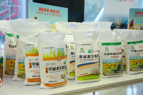 集中展示滄州本地優質農業企業的發展成果,涵蓋糧食加工、特色果蔬等多個品類。其中,以旱堿麥為核心開發的石磨全麥面粉、旱堿麥干脆面、旱堿麥啤酒等系列產品,因其“耐鹽堿、富營養、口感好”等特點,成為重點推介產品。