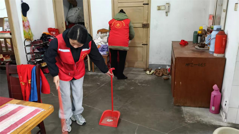 “風鈴密語”是新城社區深化“窗簾之約”的創新延伸,專為獨居老人、困難家庭等群體家中懸掛著專屬風鈴,一旦老人需要幫助,只需將風鈴收回屋內,志愿者就會上門走訪、查看情況。志愿者上門了解后得知,嚴大爺最近身體不適,家里有些清潔工作無法完成。第二天志愿者們就自帶工具,敲開了嚴大爺的門。擦窗除塵、整理雜物,把雜亂的房間打理得井井有條,還有醫護志愿者為嚴大爺測量血壓、血糖,詳細記錄健康數據?!皣来鬆?,你的這個慢性病要堅持服藥,可不能大意啊”,志愿者們細心地叮囑著用藥規范、飲食調理和運動要點?!帮L鈴一收,你們就來,真是比鬧鐘還準時!”獨居老人嚴大爺握著志愿者的手連連稱贊。