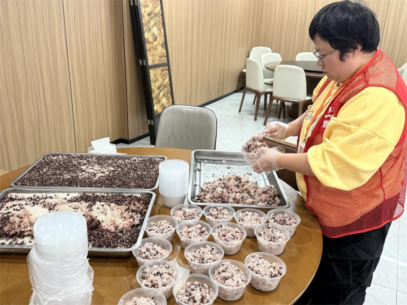 “剛出鍋的紅豆糯米飯,趁熱吃更香甜!”立冬前夕,橫街社區聯合幸福食堂開展的暖冬公益活動格外暖心。工作人員與食堂師傅們提前蒸好紅豆糯米飯,并細心分裝成獨立份量?!霸蹅冞@飯沒額外加糖鹽,您回家根據口味自己調整?!币缓泻袩釟怛v騰的糯米飯,不僅驅散了初冬的寒意,更體現了社區對居民,尤其是老年群體健康的細致考量。