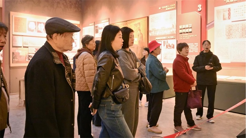 活動選址水口山——中國工人運動搖籃之一。在講解員引導下,黨員們依次參觀工運歷史、耿飚生平等展區,一張張定格歷史的照片、一件件承載記憶的實物、一個個見證初心的故事,生動再現了水口山工人運動的崢嶸歲月,將眾人帶入那段激情燃燒的年代。參觀時,老黨員駐足凝視展柜里的老照片與泛黃文件,回憶往昔,青年黨員湊近傾聽、不時提問,兩代人在低聲細語中共同追溯工運記憶。