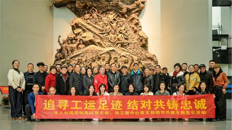 活動結束后,全體黨員在工運先驅雕像前整齊列隊合照,胸前的黨徽熠熠生輝。這場洋溢著歷史厚重感與時代活力的主題黨日,不僅讓工運精神在新時代煥發新光彩,更探索出離退休黨建與在職支部協同發展的“衡陽路徑”。正如工保中心黨支部書記謝英所言:“當‘忠誠底色’遇見‘奮斗火炬’,必將照亮人社事業高質量發展的前行之路!”(鄧臻、錢秋宇)