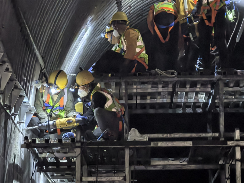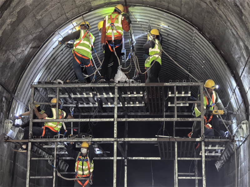 清晨“鎧甲”行動,為隧道拱頂“強筋健骨”
