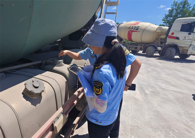 執法人員在企業開展重型柴油車檢查