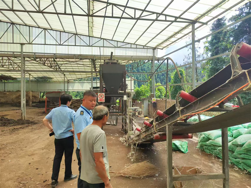 執法人員在畜禽養殖企業檢查糞污綜合利用設施運行情況