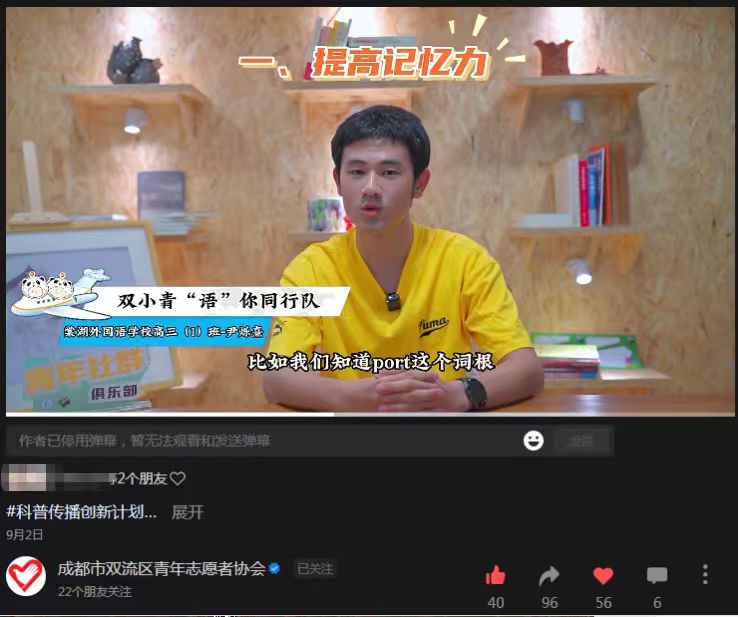 青春賦能科普!雙流區首批科普短視頻上線