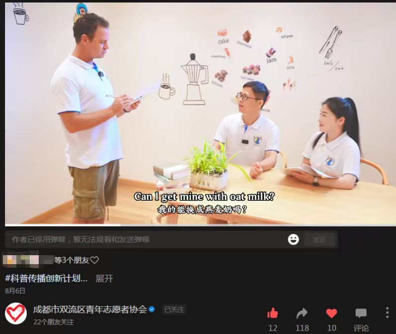 該科普傳播創新計劃是由共青團成都市雙流區委員會、雙流區青年志愿者協會聯合高??破丈鐖F共同發起的志愿服務項目,參與志愿者涵蓋心理、科學、外語等多個專業領域的大學生和青年從業者。項目籌備階段,志愿者團隊通過深入了解青年群體的知識需求和信息獲取習慣,最終確定了“碎片化傳播、場景化解讀、趣味化表達”的創作理念。