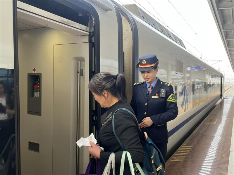 在宋佳看來,乘降安全絕非小事,它直接關系到旅客的切身安全和列車運行的整體有序。她帶領班組乘務員,將車門口的安全宣傳與乘降安全緊密結合,把標準作業程序內化為職業本能。通過一次次耐心引導、一句句溫馨提示、一個個及時幫扶,她們在流動的車站與飛馳的列車之間,筑起了一道堅實而溫暖的“移動安全屏障”,讓每一位旅客的旅途從第一步就充滿安心。(宋佳)