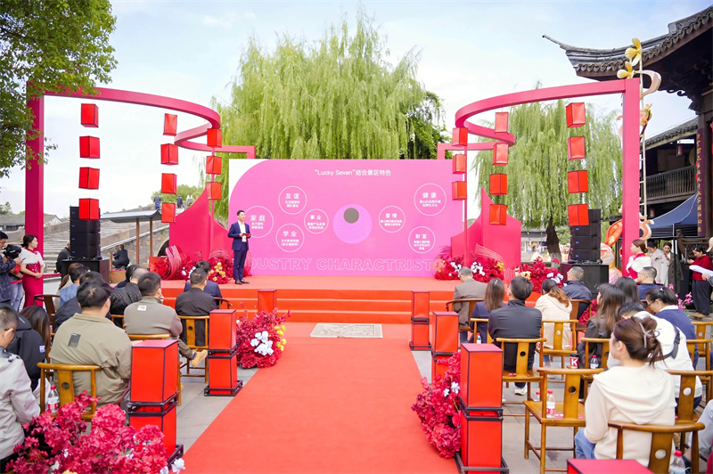 值得一提的是,發布會現場,“塘棲有喜”三大子品牌陸續發布,構建起了一套完整的喜悅生態系統。其中“小滿”是新江南美學婚禮定制品牌,以節氣“小滿”傳遞“將滿未滿”的中式幸福哲學?;槎Y跳出傳統宴會廳,融入水鄉與山野實景,推出塘棲運河系列與超山青梅系列,新人可在廣濟橋旁或超山梅樹下見證愛情?!皸珖帧眲t是一個甜蜜體驗一體化平臺,目前已打造四大沉浸內容,包括與西泠印社合作的“百喜圖”與手抄婚書體驗;定期開放公益攝影,為銀婚、金婚夫婦拍攝紀念照。而“Lucky7”是系列文創品牌,以融合超山六瓣梅與七孔廣濟橋的“喜七七”為品牌形象,首發三款產品“fufusoul”“無獨有偶”“愛詩樂”,分別寄托親情、愛情與家庭美滿的寓意。
