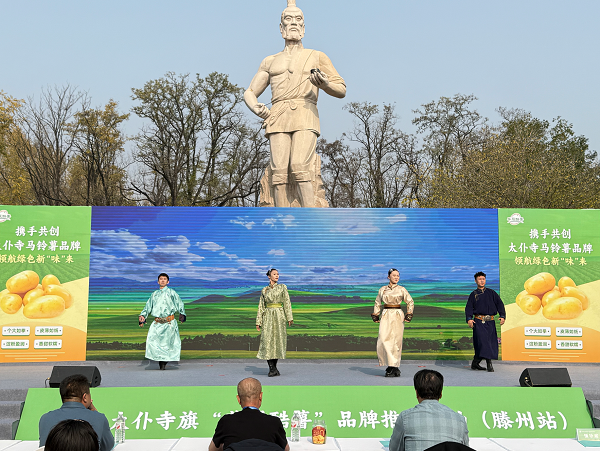 活動現場,“草原酷薯”主題宣傳視頻全方位呈現太仆寺旗馬鈴薯的地理優勢、品牌內涵及產品特色,視頻中廣袤草原、肥沃土地與勤勞農民的畫面,生動展現當地鄉村振興良好態勢?;顒油皆O置馬鈴薯體驗區與農特產品體驗區,與會人員現場品鑒馬鈴薯、牛肉干、奶制品等特色產品,對品質高度認可;太仆寺旗烏蘭牧騎現場表演草原歌曲,進一步豐富活動氛圍。