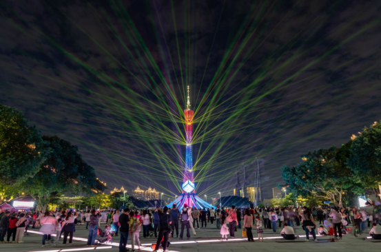 2025年廣州國際燈光節以“智匯灣區·悅動全運”為主題,與第十五屆全國運動會、第32屆廣州園林博覽會形成“三會聯動”的盛大格局,共同構建起“白天賞花、夜晚觀燈、全天享賽”的全域聯動文旅新體驗。亮燈儀式上,廣州塔、東塔、西塔首次實現三塔聯動上演璀璨光影秀,主舞臺更是突破傳統的局限,以觀眾席為主舞臺,將傳統嶺南文化與現代科技有機融合,通過科技機器狗、燈光獅等創新元素與多元表演,打造了一場演員與觀眾雙向奔赴的沉浸式盛宴,完美實現了藝術表達與全運活力的交融。