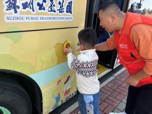 活動伊始,在蘇州公交集團姑蘇公司工作人員的詳細講解與引導下,孩子們參觀了定制公交車的外觀與內部結構,掌握了安全乘車知識和公交服務流程。這種直觀、有趣的互動方式,有效增強了孩子們對公共服務的認知與理解,提升了他們的社會適應能力。
