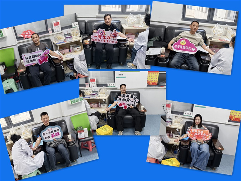 活動現場,在血液中心工作人員的耐心引導下,員工們井然有序地進行信息登記、血壓測量、血液初篩等流程。他們之中,有沖鋒在前的黨員干部,有巾幗不讓須眉的女職工,也有剛剛結束維護工作就匆匆趕來的技術骨干。那一抹抹熟悉的“有線藍”,此刻正悄然化作連接生命的“熱血紅”。