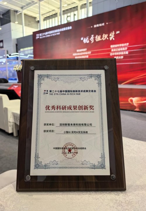 在眾多參展項目中,深企十方融海自主研發的“小智AI——實時AI交互系統”憑借在AI情感交互領域的突出表現,成功斬獲優秀科研成果創新獎,成為本次高交會人工智能領域的一大亮點。