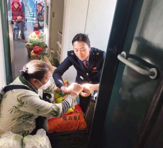 “我們一站三報、精準提醒,就是讓各族老鄉聽得明白、坐得安穩?!币鼛煾蹈嬖V筆者,列車員們還自備了捆扎袋和噴壺,解決了村民貨物收納和蔬果保鮮的難題,讓山區農產品能帶著露珠走向市場。
