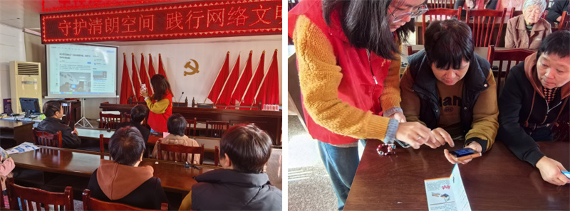 活動伊始,集體觀看2025年網絡安全周系列科普視頻《拒絕網絡謠言》《在網上什么事不能做》和專題警示片《打擊網絡謠言、謹防暗鍵傷人》。結合視頻,志愿者針對農村生活中常見的涉謠場景,將網絡安全知識轉化為“家常話”“身邊事”,通過真實案例深入剖析網絡謠言的危害及相關法律,警示大家網絡發言時務必謹慎,切勿制造謠言,不轉發傳播謠言,不觸犯法律底線;指導如何通過官方途徑舉報違法及有害信息?,F場還設置互動問答環節,村民們積極參與,在交流中進一步明確了網絡行為的邊界?!熬W絡不是法外之地,謠言害人害己”“警惕AI謠言和合成視頻,太逼真了,都是為了漲粉編的”“保持理性思考,增強防范意識”……大家紛紛表示將從自己做起,自覺抵制謠言,提高網絡行為素養,做網絡文明的守護者。