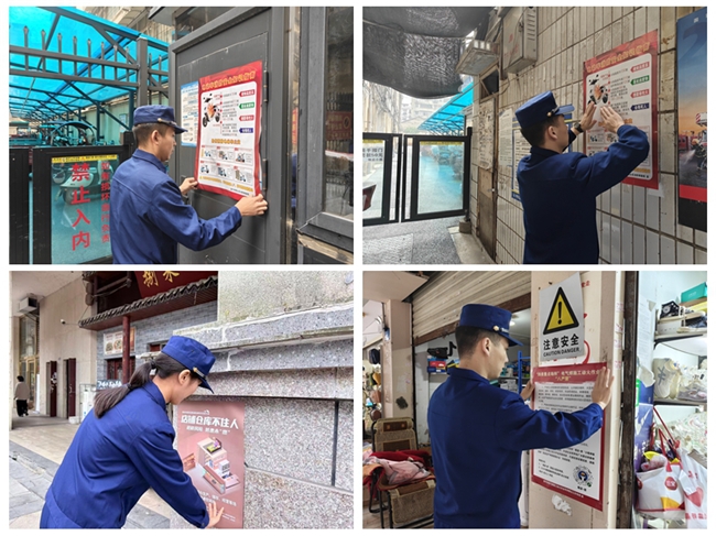 活動中,大隊宣傳人員在街道公示欄、老舊小區出入口、商業綜合體等醒目位置,根據不同場所特點,張貼各類消防宣傳海報,確保轄區群眾在日常生活中抬眼可見、駐足即學。海報內容重點提醒群眾注意日常用火用電用氣安全,落實“三清三關”要求,不占用疏散通道,規范電動自行車停放,引導居民自覺做到“樓道不堆物、電動車不進門”,在潛移默化中增強防火意識,主動排查身邊火災隱患。