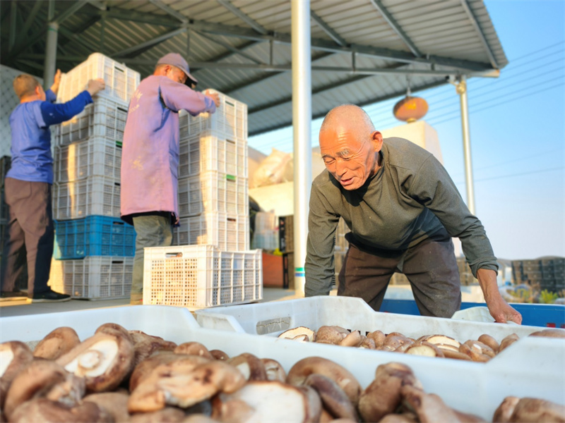 該鎮通過“技術指導、金融服務、農業保險、保底收購”的全鏈條服務模式,讓企業安心擴規模、搞加工,農戶放心投勞力、增投入。陳松國就是最早一批受益者,2024年他就投資了5萬棒香菇菌棒,談起收益滿臉喜色:“有公司技術員免費指導,育出的菌棒和成品香菇還能回收,跟著干踏實,能掙錢!”