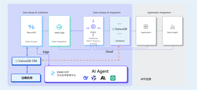 圖:KaiwuDB & EMQ云邊端一體化數據底座聯合解決方案
