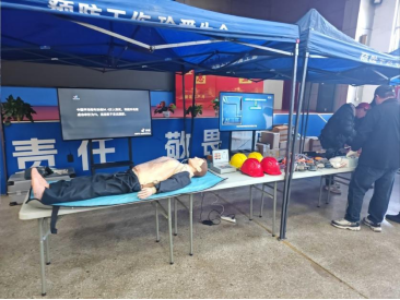 在互動體驗區,各類宣傳體驗設備前擠滿了參與職工。勞動防護用品展示區里,工作人員詳細演示了安全帽、防塵口罩等防護裝備的正確佩戴方法與檢查要點,針對煤礦粉塵危害防控進行專項指導;模擬觸電體驗裝置讓職工在安全環境下親身感受電擊風險,直觀認識規范用電的重要性;消防教學體驗區中,滅火器實操演練與火災逃生技巧講解同步開展,提升職工應急處置能力;VR體驗設備則通過沉浸式場景還原了井下作業隱患場景,職工在虛擬操作中強化了風險識別能力。此外,海姆立克急救法演示與心肺復蘇實操教學環節,讓職工熟練掌握了基礎急救技能,為應對突發健康狀況增添保障。