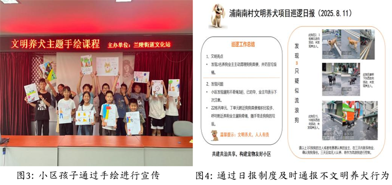 多方位,群眾性的監督體系是我國全過程人民民主實踐中的重要特色。浦陵社區黨總支書記趙超介紹,養犬文明公約頒布后,他們還發動小區黨員和積極分子,成立由社工和志愿者組成的“文明養犬巡邏隊”,制定《南村文明養犬督導隊志愿者積分管理制度》,建立多元監督機制,實行“定期巡邏+業主抓拍+紅黑榜公示”模式,鼓勵業主隨手抓拍不文明行為反饋至社工站,對遛狗不牽繩、糞便不清理等行為進行公示,并及時勸導。