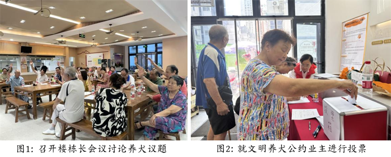 面對養犬難題,浦陵社區構建以黨建為引領,以社區為核心,聯動社工站、小區志愿者、社區執法部門、公益慈善資源等治理共同體,實行全過程人民民主,推動單向管理向聯動型治理轉變。
