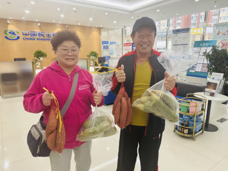民生銀行大連星海支行、延安路支行等網點則為客戶準備了地瓜、蘿卜這對“冬菜黃金搭檔”,精挑細選的食材鮮味十足?!翱催@蘿卜水靈靈的,今晚的餃子餡就用它配牛肉!”拿到秋菜的王阿姨開心說道。