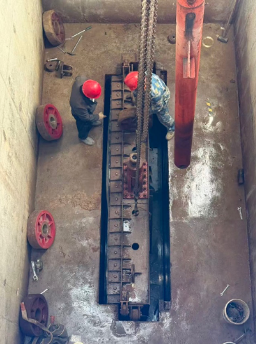 芒稻船閘聯合揚州船閘應急保障中心,順利完成閥門出水檢查養護工作。聯合檢查小組對出水后的閥門門體、主側滾輪及止水系統等關鍵部件展開“地毯式”全面排查:細致核查門體表面有無裂紋、變形等隱患,逐個檢測主側滾輪轉動靈活性及磨損程度,重點排查止水系統密封性能,確保不留死角、不漏隱患。針對檢查中發現的主、側滾輪磨損問題,工作人員當即制定整改方案,現場完成下游閥門2只主滾輪、1只側滾輪,以及上游閥門各1只主、側滾輪的更換作業,確保每一部件均處于最佳技術狀態。此次養護為冬季枯水期船閘安全高效運行提供了有力硬件支撐。