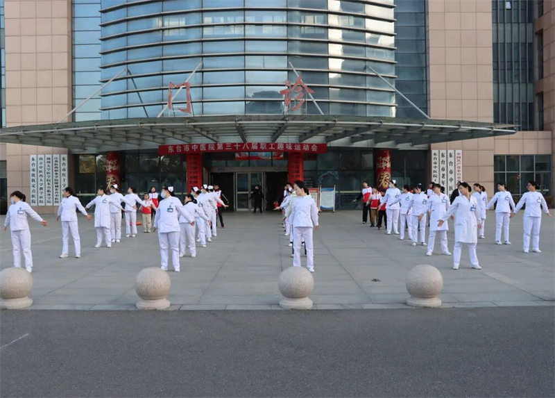 門診大樓前,東臺市中醫院護理團隊帶領市民現場學習健身氣功八段錦。舒緩的音樂聲中,大家隨著口令緩緩抬手、屈膝、轉身,動作剛柔相濟、氣息自然流暢。