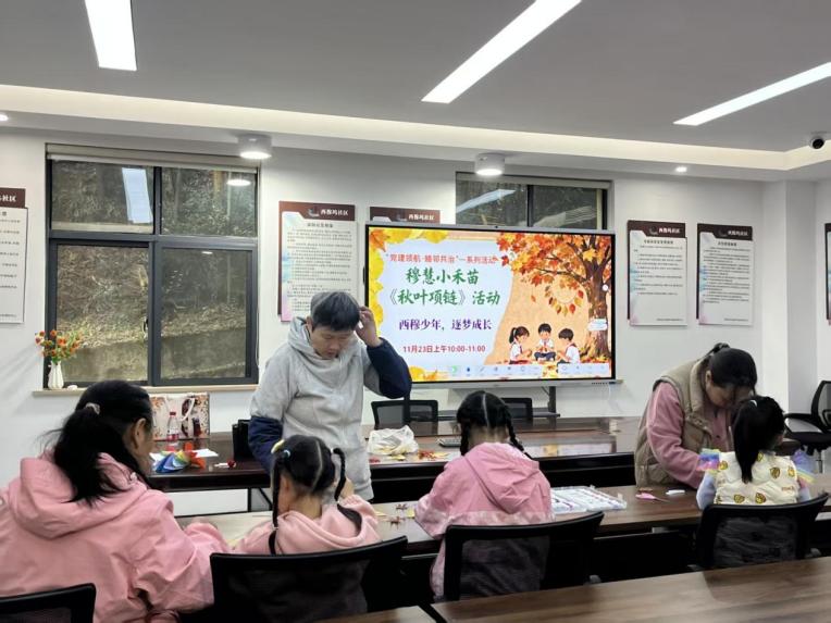 西穆塢社區文化家園里,孩子們制作了“穆慧小禾苗·秋葉項鏈”。作為社區“西穆少年·逐夢成長”系列活動之一,這項創意手作為孩子們提供了探索興趣、收獲陪伴的成長平臺。